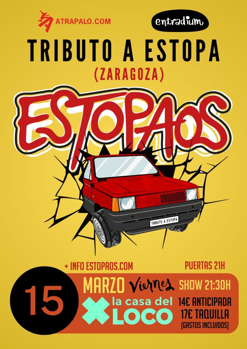 Con actuaciones a lo largo de toda la península Ibérica, “Estopaos” se ha consolidado como una de las mejores bandas Tributo Nacionales. Un show cuidado hasta el último detalle para ofrecer el homenaje más profesional de “Estopa”. Sus actuaciones repasan todos los grandes éxitos del grupo con canciones que ya han marcado a varias generaciones y abarcan un gran abanico de público de todas las edades.