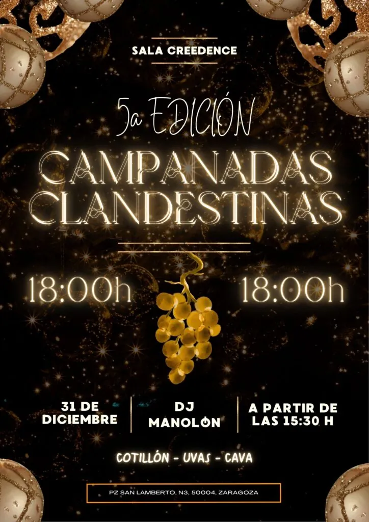 V CAMPANADAS CLANDESTINAS Tardeo, cotillón, cava y uvas. en Sala Creedence.